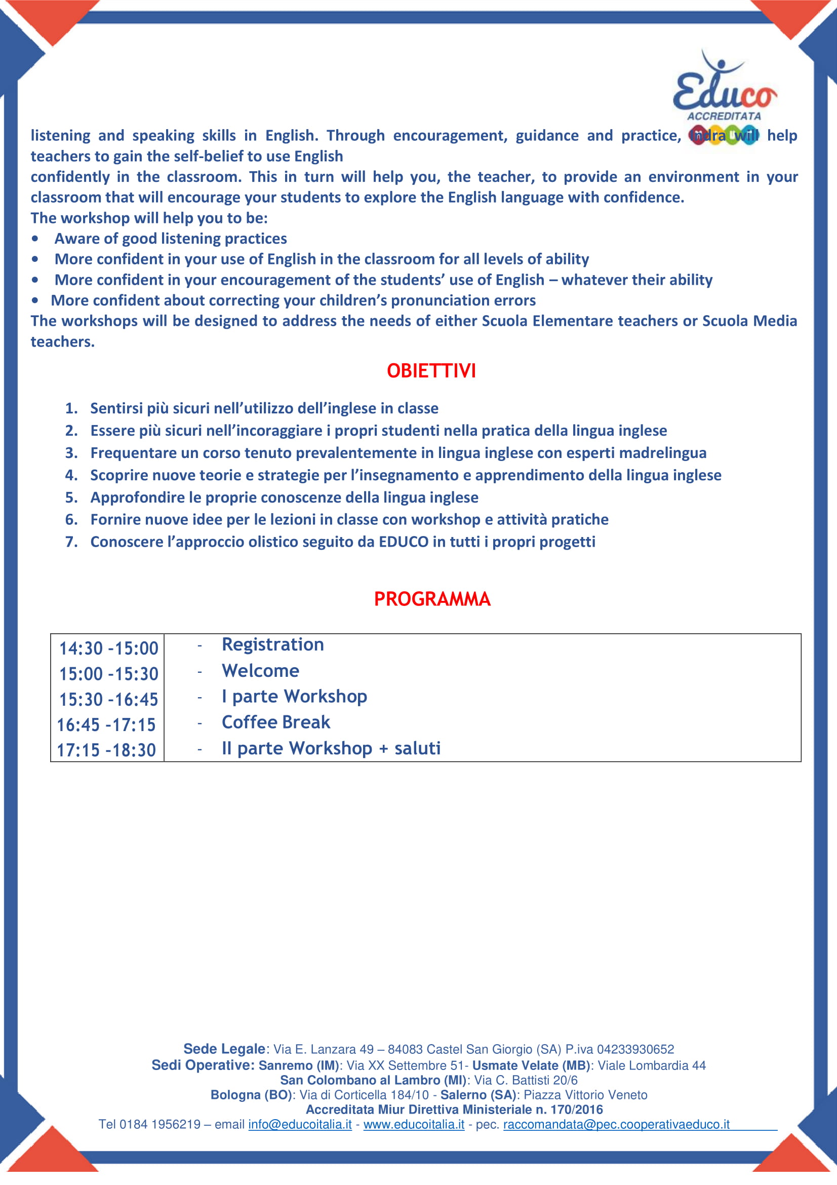 EDUCO CORSO DI FORMAZIONE PER DOCENTI